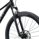 The Talon 3 rolls on Maxxis Ikon 2.2-inch tyres — 27.5-inch on smaller frames and 29-inch on medium and above. The Ikon is a well-proven XC trail tyre. It rolls quickly on hardpack and firm surfaces, yet grips effectively on loose and rooty terrain. The Giant GX03V double-wall alloy rims use a 21mm inner width. They’re light, strong, and well-suited to everyday trail riding. Furthermore, the frame accepts tyres up to 2.4 inches wide, giving you room to fit chunkier rubber as your riding develops.