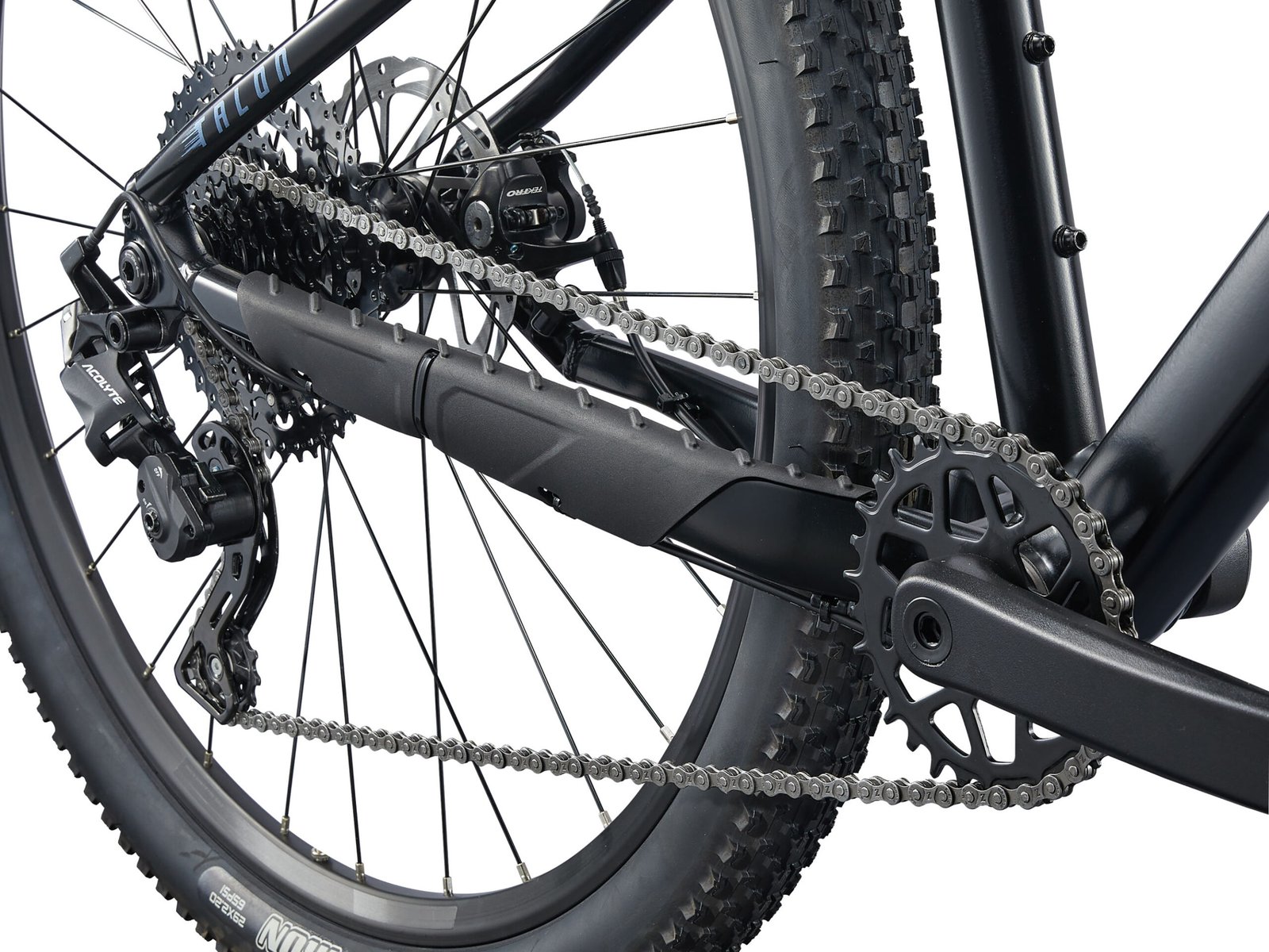 The Talon 4 runs a microSHIFT Acolyte 1×8-speed drivetrain with a clutch-equipped rear derailleur. The clutch keeps the chain tensioned on rough terrain. Therefore, dropped chains become far less likely when things get bumpy. A 33T chainring (27.5 models) or 30T (29-inch models) pairs with a microSHIFT 12-46T cassette. This gives a useful gear range for climbing and descending on typical UK trail terrain.