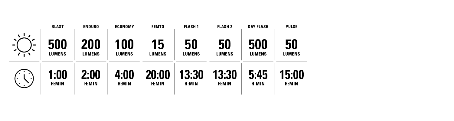 - Max 500 lumens / 20-hour runtime in Femto mode